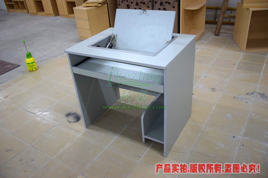 单人位带边框翻转电脑桌K087产品名称单人位带边框翻转电脑桌产品型号K087产品尺寸800600760mm产品材质密度板、夹板产品颜色浅灰色-麻面(有其他颜色可?。┌宀暮穸?8mm(面板可加厚)开孔尺寸480x380mm(19寸)可装显示器19寸液晶屏显示器科桌翻转电脑桌主要应用于各种大型会