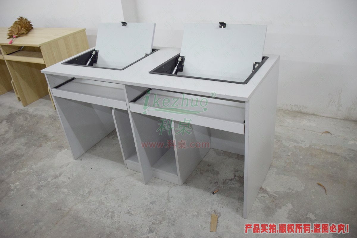 科桌翻转电脑桌主要应用于各种大型会议室,学术报告厅,计算机教室,多媒体教室、多媒体会议室、多媒体电子教室、多媒体电教室、机房、培训中心,展厅内及多功能会议厅等。普通教室与计算机教室模式相互切换快速,不阻碍老师与学生之间目光交流。