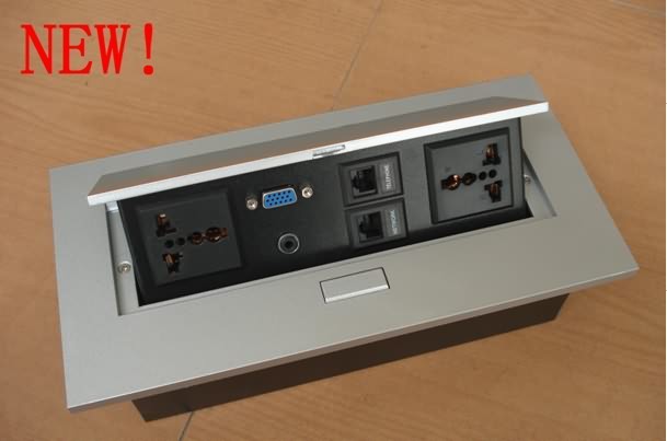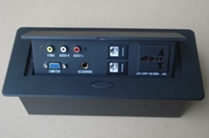 翻盖多功能桌面插座是目前市场上较为新款、实用的、美观的多功能桌面线盒,此款多功能桌面线盒适用于办公会议桌、班台、洽谈桌面、个人办公桌等。作为会议办公桌面线盒,本系列的多功能桌面插座面板采用高质量铝合金材质,面板表面采用阳极化精密度铝拉丝处理,手感光滑细腻,外观精美高档,可以很容易的安装嵌入到任何会议桌面任何位置不影响桌面整体效果。