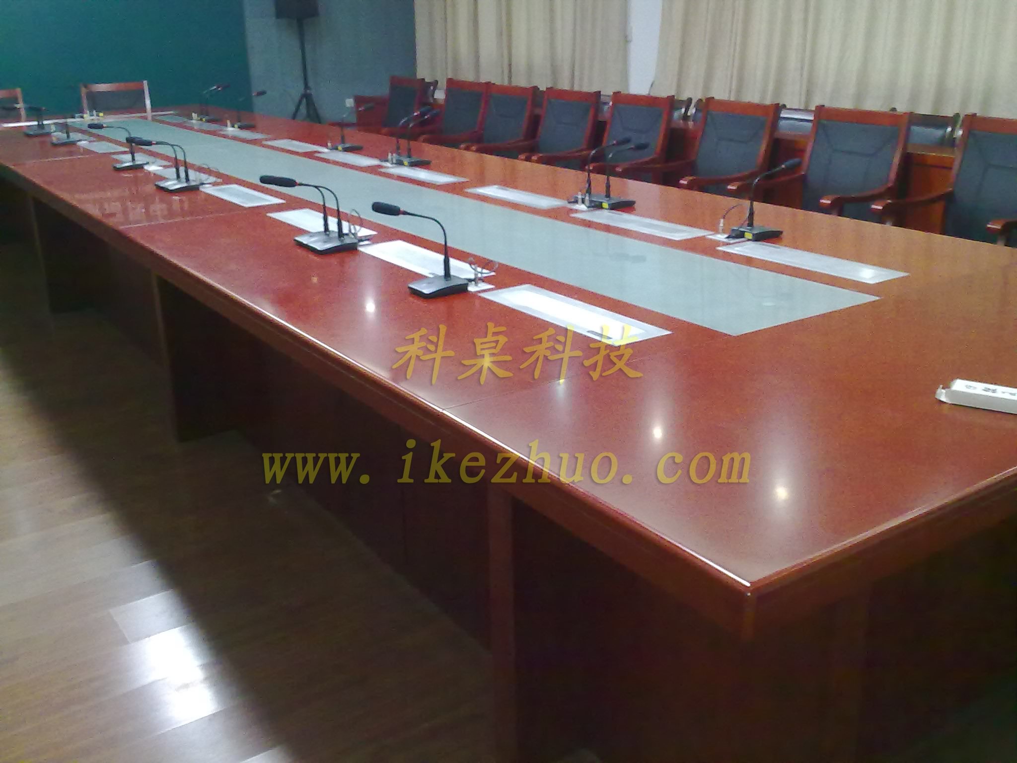从会议桌下面升到桌面、◆当不使用显示器时,◆升降机自动下降,◆显示器隐藏在会议桌内,◆起到防尘,◆防盗,◆保持桌面平整美观。